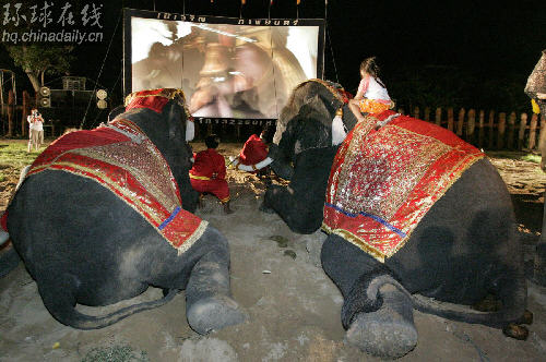 泰國大象集體看電影 主角是大象觀眾樂陶陶