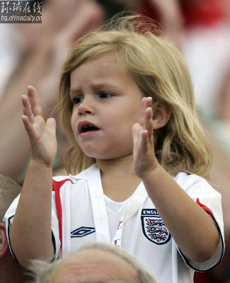 6月10日,英格蘭在本次世界杯的第一場比賽中,隊長貝克漢姆的妻子“辣妹”帶著兒子羅密歐一起來到觀眾席親自為小貝助陣。除了貝克漢姆的兒子,英格蘭隊還有一些隊員的孩子也來德國為爸爸加油。