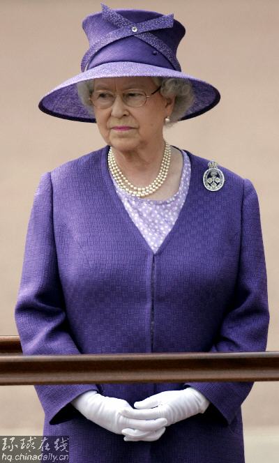 身穿紫色系衣裳的女王。(路透社圖片)