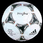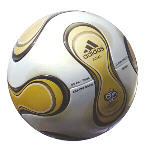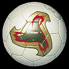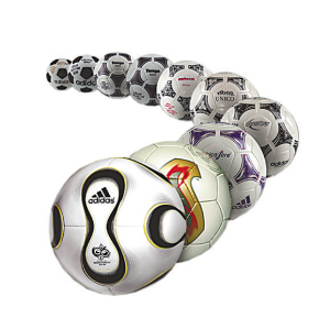 1998年法國(guó)世界杯用球——“三色旗”,由代表法國(guó)國(guó)旗的藍(lán)、白、紅三種顏色構(gòu)成,并配以象征著法蘭西民族的“雄雞”標(biāo)志。球迷們更為熟悉的是上屆韓日世界杯用球——“飛火流星”,球體上的紅色火焰代表著熱情,而火焰中央的渦輪圖案則象征著韓日兩國(guó)近年來(lái)科技上的巨大發(fā)展。