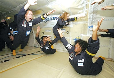 54歲的美國克利夫蘭中學理科教員邁克·希奇簡直像一位中學生,當197磅重的他自由地飄浮在空中時一直笑個不停,希奇與其他38位中學老師一起,在美國“零重力公司”一架經過特殊改裝的波音727飛機中體驗著失重帶來的新奇感。
