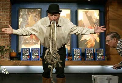 在紐約舉行的一場表演中,“得克薩斯耍蛇人”杰克將10條約0.76米長的響尾蛇放入嘴中,持續(xù)了12.5秒,創(chuàng)造了新的“吉尼斯世界紀(jì)錄”,成為口含活響尾蛇最多的人。