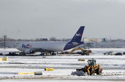 美國中部遭遇暴風雪襲擊機場在清掃積雪