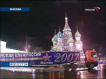 中國日報網環球在線消息:隨著2006年年底的臨近,各國都在精心地為圣誕、新年做著準備。日前,俄羅斯圣誕、新年的標志物——俄羅斯圣誕樹已經運到了莫斯科克里姆林宮教堂廣場,這棵超過30米高的圣誕樹將和人們一起歡度圣誕、新年假期。