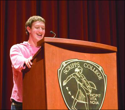 扎克伯格在SCRIPPS大學演講。Facebook風靡美國大學,創始人也相當受歡迎。