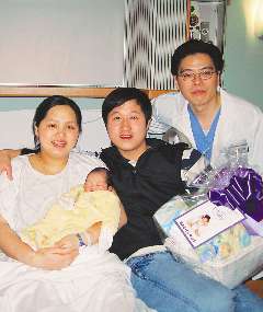 劉燕珠(左)抱著女兒與丈夫以及醫(yī)生合影