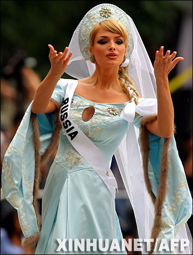 在墨西哥首都墨西哥城,俄羅斯小姐展示民族服裝。