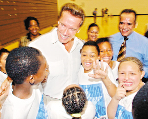 前好萊塢明星、加州州長施瓦辛格探望參加夏令營的孩子。