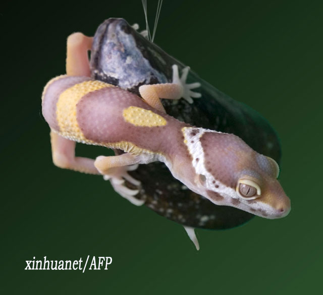 這張7月18日獲得的照片顯示的是一只壁虎。壁虎能在光滑的墻面行走自如,因此制造出像壁虎腳底一樣具有神奇黏合力的材料一直是某些專家的夙愿。7月18日出版的英國(guó)《自然》雜志說(shuō),美國(guó)研究人員仿照壁虎的腳底,把用碳納米管材料制成的毛狀物覆蓋到聚合物表面,這些毛狀物具有與壁虎腳底細(xì)毛類似的功能。最終,研究人員研制出一種柔軟的貼片,可以反復(fù)粘貼、扯下,而且其性能比壁虎腳底更勝一籌。研究人員說(shuō),這種碳納米管材料黏合時(shí)的力量是壁虎腳底的4倍。