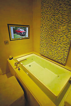 尤其值得一提的是,臥室的天花板是一面巨大的鏡子,底下的水床可以全方位旋轉。客人無需步出客房,只需坐在陽臺上那個價值70萬美元的超豪華按摩浴缸內,便可透過巨大的落地玻璃將拉斯維加斯大道的美景一覽無余。除了精美絕倫的硬件之外,這里的軟件同樣無可挑剔。每位客人都可以盡享24小時管家式服務,私人按摩師、私人廚師和紙牌游戲工具隨叫隨到。