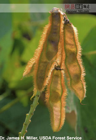 葛藤是一種半木本的豆科藤蔓類植物,具有驚人的蔓延力和繁殖力,可以大面積地覆蓋樹(shù)木和地面。據(jù)估計(jì)在美國(guó)東部葛藤每年以兩到三百萬(wàn)公頃的速度蔓延著,造成的作物減產(chǎn)和滅除葛藤的費(fèi)用每年都達(dá)到了五億美元。
