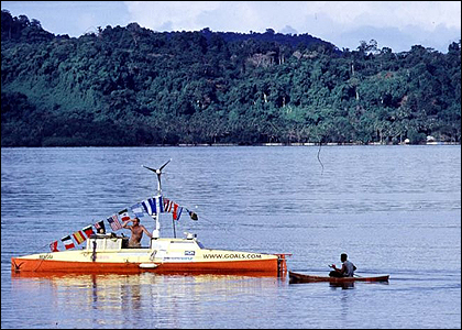 在同伴離開后,劉易斯繼續(xù)堅持上路。接下來的旅程同樣波折不斷。在所羅門群島,他的行程因為當?shù)貎葢?zhàn)而打亂;在埃及,他曾被懷疑是間諜而關進大牢,面臨40年監(jiān)禁;在太平洋上,他患上了敗血癥,醫(yī)生通過衛(wèi)星電話指導他服用抗菌藥物才保住性命。