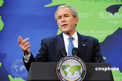 二十國集團領導人金融市場和世界經濟峰會2008年11月15日在華盛頓閉幕。在隨后舉行的國際媒體記者招待會上,峰會東道主、美國總統布什表達了對美國未來總統奧巴馬的祝愿。中新社發 邱江波 攝