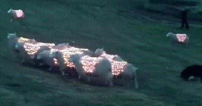 接下來,綿羊身上的LED燈光被換成五顏六色的彩燈,并拼出了達芬奇名畫《蒙娜麗莎》的模樣。這個部分可以說是整個視頻的重頭戲。最后展示了燃放焰花的情景。只見一只身上點綴以燈光的牧羊犬迅速向同樣點綴以燈光的羊群跑過去,當牧羊犬抵達羊群中間位置時,所有的綿羊向四面八方散開。由于亮著光,就好像煙花爆開了似的。
