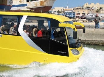 中國(guó)日?qǐng)?bào)網(wǎng)環(huán)球在線消息:據(jù)英國(guó)《每日郵報(bào)》3月28日?qǐng)?bào)道,馬耳他“Amphi長(zhǎng)途客車(chē)”(AmphiCoaches)公司制造出了世界上首輛水陸兩用大巴,并已經(jīng)在當(dāng)?shù)厥褂谩?/p>