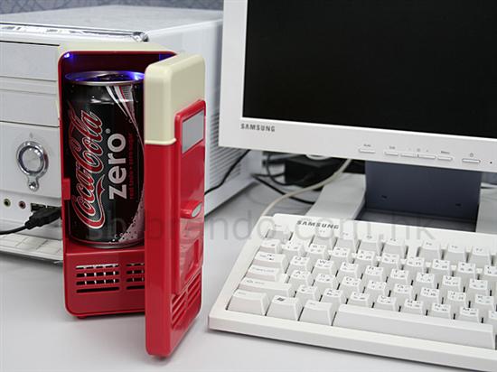 炎熱的夏天,我知道你們都在等它,貨真價實,這是一款使用USB端口5V電壓供電的冰箱。 USB設備給我們帶來種種便利實在妙不可言,冬日里我們可以有USB暖手爐/USB手套,夏天我們也可以在游戲上網的同時放一聽雪碧到桌子上的USB冰箱里,隨時暢飲冰爽感受。