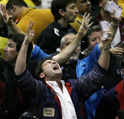 2006年5月10日,美聯儲公布提息后,芝加哥商品交易所的交易員在進行期貨交易。