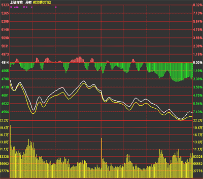 兩市股指大幅低開,開盤半小時后上演了全天的第一次暴跌,隨后中石油攜權重股普遍有所反彈,農林牧漁、釀酒食品、電器板塊一度活躍。隨著反彈空間受限,港股市場早盤重挫逾8%又加劇了A股市場回吐壓力的釋放,午后再現暴跌,滬綜指一度下跌400余點,跌幅達8.17%,跌至4511.95點;深成指、滬深300指數一度重挫逾8%。尾盤股指小幅彈升。