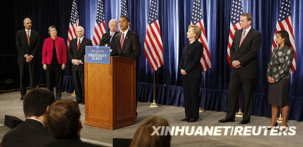12月1日,美國當選總統奧巴馬(左五)在芝加哥舉行新聞發布會,正式宣布新政府國家安全班子成員名單。奧巴馬提名紐約州國會參議員、前第一夫人希拉里(右三)為新政府國務卿人選,并提名現任國防部長蓋茨(左三)留任。他還提名前海軍陸戰隊司令瓊斯(右二)為總統國家安全事務助理、司法部前副部長霍爾德(左一)為司法部長、亞利桑那州州長納波利塔諾(左二)為國土安全部部長,蘇珊·賴斯(右一)為美國駐聯合國大使。新華社/路透 中國日報網環球在線消息:美國當選總統奧巴馬3日提名新墨西哥州州長比爾·里查森為新政府商務部長人選,并稱里查森將成為美國未來經濟外交的主要人物之一。 奧巴馬說,里查森有在國會、聯邦和地方政府工作的豐富經驗,對經濟事務有全面了解,并懂得解決經濟問題之道。里查森將加入以財政部長人選蓋特納為首的新政府經濟團隊。 里查森是奧巴馬迄今為止提名的首位拉美裔內閣成員,也是繼副總統拜登和國務卿人選希拉里之后,第三個進入奧巴馬內閣的奧巴馬前預選對手。 里查森現年61歲,民主黨人。他父親是美國人,母親是墨西哥人。曾任國會眾議員,美國常駐聯合國代表和能源部長。2002年當選新墨西哥州州長,2006年獲得連任。他曾參加今年民主黨總統預選,但在預選首站艾奧瓦州失利后退出,之后宣布支持奧巴馬。 奧巴馬自從在11月4日舉行的美國總統選舉中獲勝后,正著手進行組建新政府和權力交接的工作,陸續任命白宮官員和提名內閣成員人選。此前他已任命白宮主要官員并宣布了經濟團隊和國家安全團隊人選。(來源:新華網華盛頓12月3日電 編輯:肖亭) |