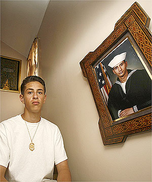 16歲的奧薩馬·納賈爾。他身旁鏡框中的人物是他哥哥,