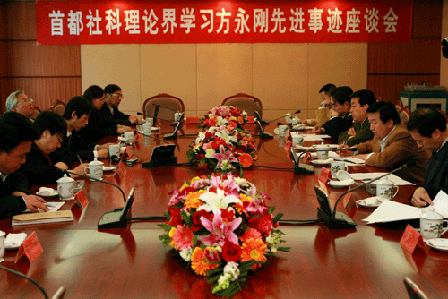 中國日報網環球在線消息:4月17日,首都社科理論界學習方永剛先進事跡座談會在北京召開。來自中央黨校、北京大學、清華大學、人民大學和方永剛母校――上海復旦大學等單位的代表,在座談會上暢談學習方永剛先進事跡的體會和感想。 新華社記者 李明放攝