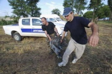 圖片說明:格魯吉亞稱此物為俄戰(zhàn)機(jī)發(fā)射的導(dǎo)彈殘片 |
