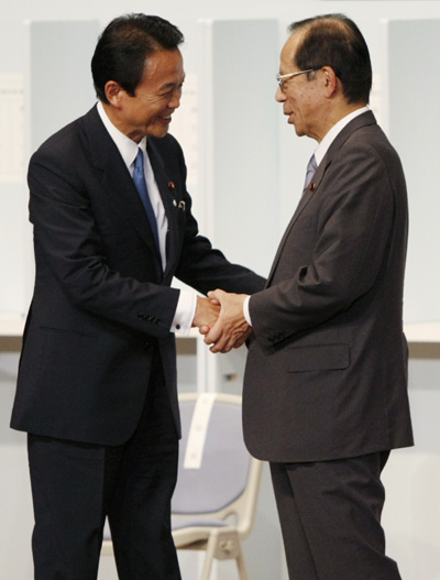 麻生太郎(左)表示接受選舉結果