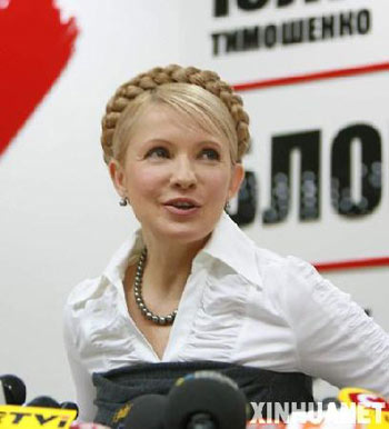 10月12日,烏克蘭季莫申科聯盟領導人季莫申科在烏克蘭首都基輔舉行的新聞發布會上講話。[新華社圖片]