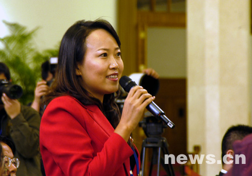 10月14日16:30,中國共產黨第十七次全國代表大會新聞發言人李東生在人民大會堂三樓金色大廳舉行首場新聞發布會。圖為中央電視臺記者正在提問。(新華網榮忠霞/攝)