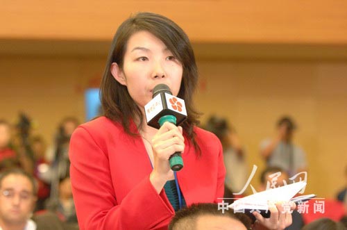 10月14日16:30,中國共產黨第十七次全國代表大會新聞發言人李東生在人民大會堂三樓金色大廳舉行首場新聞發布會。圖為新華社記者正在提問。(新華網榮忠霞/攝)