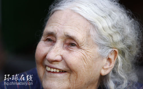 10月11日,英國女作家多麗絲·萊辛向鏡頭微笑。瑞典皇家科學(xué)院當(dāng)日宣布,多麗絲·萊辛獲得2007年諾貝爾文學(xué)獎。