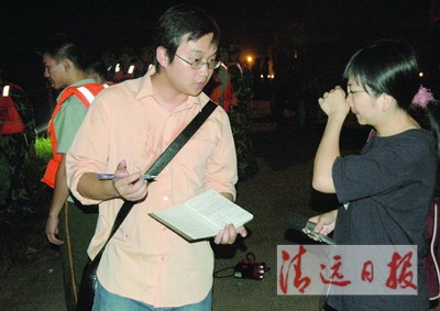 記者劉厚斌19日從凌晨2點開始就在大燕河出險堤圍深入采訪。