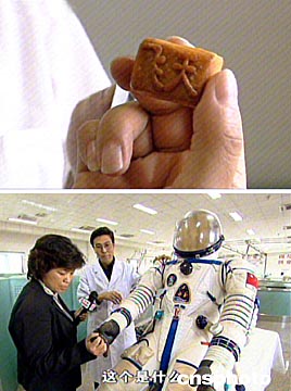 中國日報網(wǎng)環(huán)球在線消息:2003年10月16日,北京新聞媒體記者在中國首次載人航天飛行取得圓滿成功之時參觀北京航天城,觀看中國自制的航天服和具有中國特色的航天食品——特制飛天月餅。