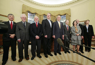 布什(左5)與2007年諾貝爾獎得主合影。(英國媒體圖)
