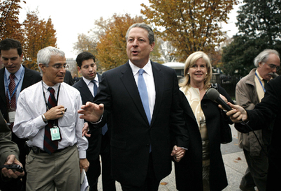 在2000年總統大選中,戈爾敗給布什之后,便投身于環保事業,就氣候變化給地球帶來的威脅在全球進行演講,推動人們關注這一問題。他參與制作的環保紀錄片《難以忽視的真相》今年2月獲得奧斯卡最佳紀錄片獎;10月份,因對全球氣候變化的關心與貢獻,戈爾與聯合國政府間氣候變化專門委員會共同獲得了2007年諾貝爾和平獎。