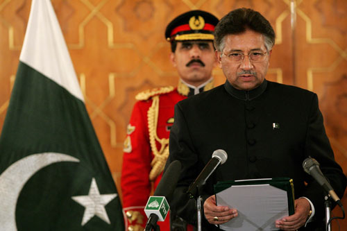 11月29日,剛剛辭去陸軍參謀長職務的穆沙拉夫在巴基斯坦首都伊斯蘭堡的總統府以平民身份宣誓就任新一屆巴基斯坦總統。新華社發