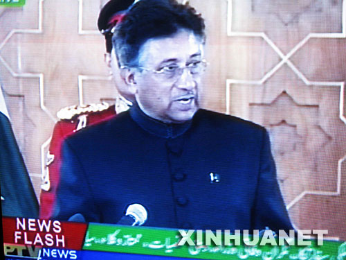 11月29日,穆沙拉夫以平民身份宣誓就任新一屆巴基斯坦總統。這是巴基斯坦官方電視臺播放的穆沙拉夫就職的電視照片。新華社發