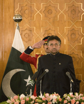 中國日報網環球在線消息:當地時間11月29日,在辭去陸軍參謀長一職后,穆沙拉夫在巴基斯坦首都伊斯蘭堡以平民身份就任新一屆總統,開始又一個5年任期。