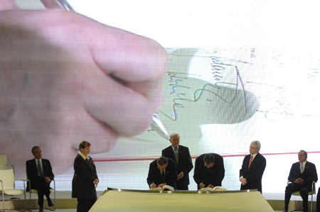 簽字儀式在被聯合國教科文組織列為世界文化遺產的熱羅尼莫斯修道院舉行。歐盟輪值主席國葡萄牙總理蘇格拉底、歐盟委員會主席巴羅佐和歐洲議會議長珀特林先后發表簡短講話。