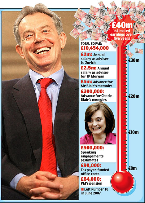 有專家認為,在未來5年內,布萊爾的收入將會達到每年4000萬美元。布萊爾強大的“吸金”能力讓人感到吃驚,也招致了一些英國議員的不滿。英國自民黨議員諾曼·貝克表示:“這個人沒有羞恥心嗎?一位前首相如此四處待價而沽的行為實在讓英國覺得尷尬。”