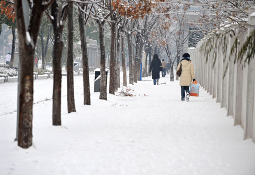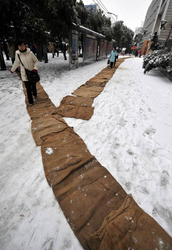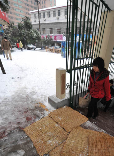 1月29日,江西省兒童醫(yī)院門前已墊上防滑麻袋。 12月28日晚,南昌市普降大雪,這是入冬以來最大的一場雪。據(jù)悉,1月中旬以來,南昌市持續(xù)了10多天雨雪、低溫天氣,創(chuàng)50年之最。