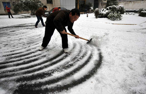 1月29日,許多市民在清掃積雪。 12月28日晚,南昌市普降大雪,這是入冬以來最大的一場雪。據(jù)悉,1月中旬以來,南昌市持續(xù)了10多天雨雪、低溫天氣,創(chuàng)50年之最。