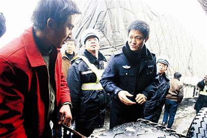 省公安廳副廳長趙飛(右一)向受困司機(jī)做解釋和安撫工作