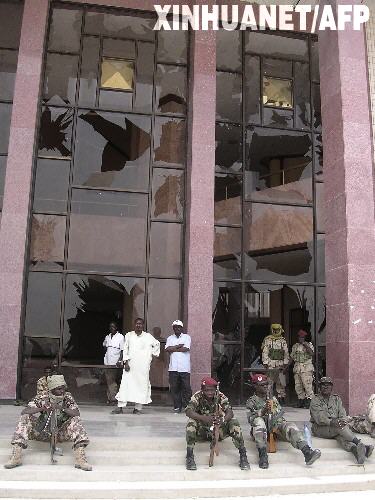這張2006年4月17日拍攝的資料照片顯示在乍得首都恩賈梅納,乍得士兵在經過激戰的總統府前休息。中國駐乍得使館官員2008年2月2日上午證實,乍得反政府武裝與政府軍正在首都恩賈梅納城內交火,乍得總統府一帶槍炮聲非常激烈。新華社/法新