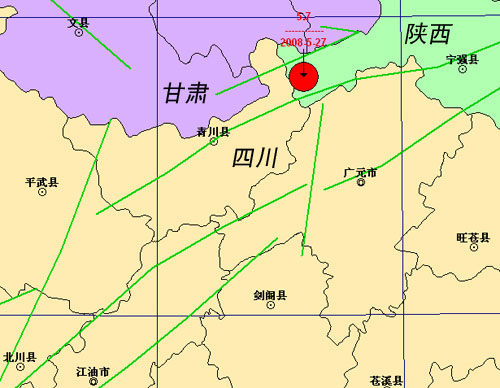 圖示為27日16時37分,陜西省寧強縣發生5.7級地震。(圖片來源:陜西省地震局網站)