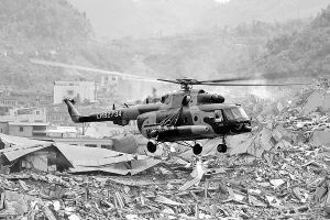 這是本報記者岱天榮5月15日拍攝的92734直升機在北川執行救援任務時的場景。16天后,這架直升機在執行任務時不幸失事。
