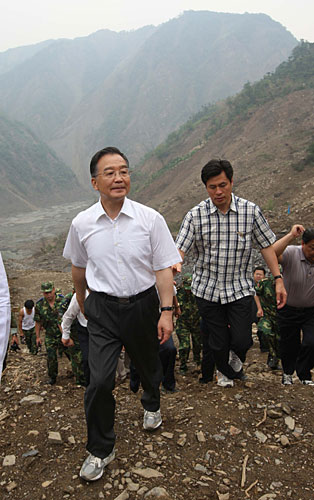隨后,溫家寶前往唐家山堰塞湖搶險指揮部,看望水利專家,現場指揮部署除險工作……(來源:新華網四川綿陽6月7日電 編輯:肖亭)