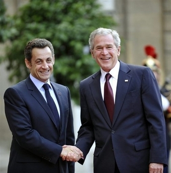 據英國媒體報道, 布什與薩科齊當天在愛麗舍宮就伊朗核問題、中東局勢、阿富汗問題等重要議題舉行了一個半小時的工作會談,在隨后召開的記者招待會上雙方強調要繼續將強美法兩國的合作。薩科齊稱,法美兩國已經保持了200多年的良好關系,美國可以信任作為“朋友和盟友”的法國。至于彼此之間的分歧,他說,兩國可以討論,討論應以“平和”的方式進行,避免傷害彼此感情。