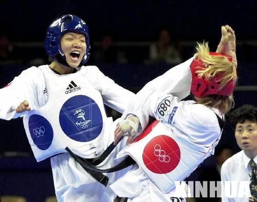 圖為2000年9月30日,陳中在悉尼奧運會跆拳道67公斤以上級決賽中,戰勝俄羅斯選手伊萬諾娃,獲得金牌。(資料照片)新華社記者戚恒攝