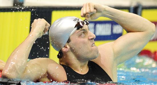 7月5日,美國名將韋伯-吉爾在奧馬哈舉行的美國奧運游泳選拔賽男子50米自由泳決賽中,以21秒47的成績奪得第一名,獲得了2008年北京奧運會參賽資格。新華社記者張巖攝